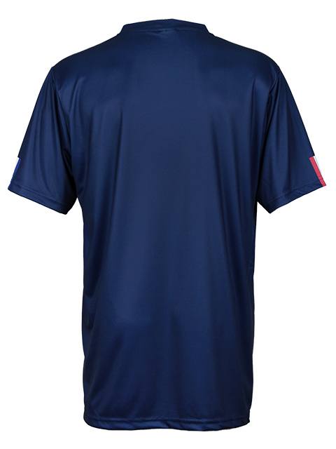 - 袖も紺色で袖口の赤色・白色・青色(トリコロールカラー)のワンポイントがデザインのアクセントとなってます。