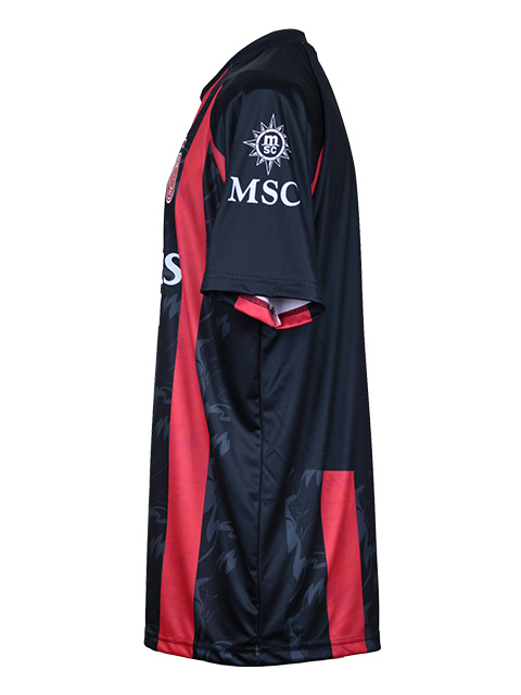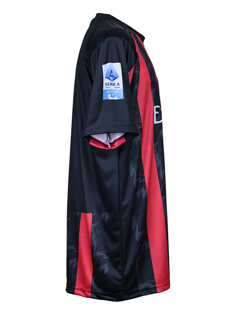 - 袖は肩の部分(上側)は黒色、脇の部分(下側)は赤色で構成してます。左袖にはスポンサーロゴ、右袖にはセリエAのパッチがプリントされてます。